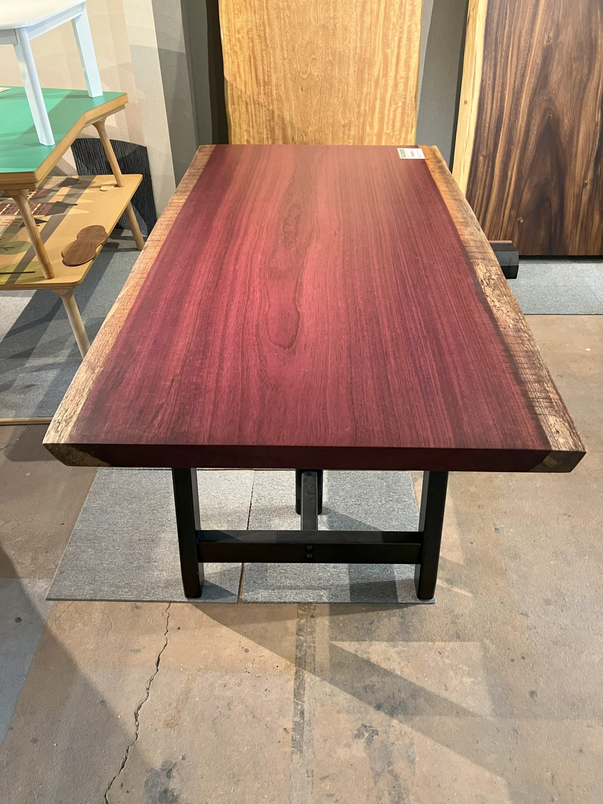 パープルハートの最大の特徴は他に類を見ない紫色の天板です。空気に触れ酸化することでみるみるうちに鮮やかな紫色に変化して渋みが増していきます。つかえば使うほど周りの家具やインテリアに馴染んでいく経年変化も楽しみの一つです。